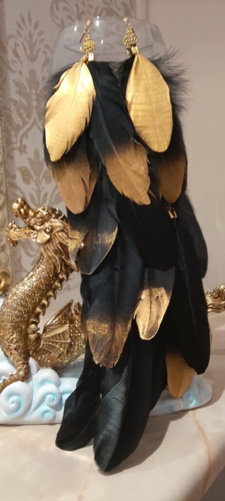 Kolczyki Szamańskie z ptasich piór intencyjne na zamówienie.